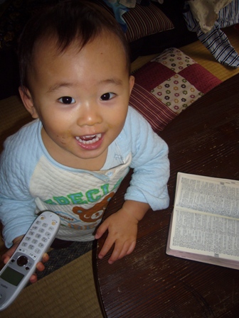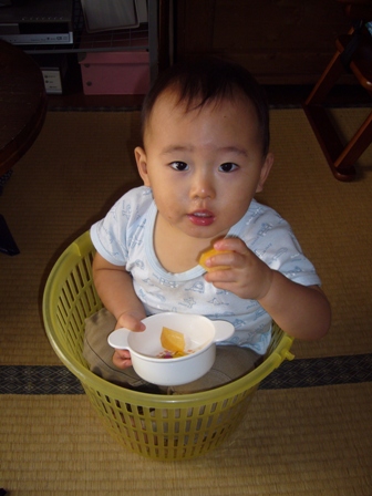 ママの携帯電話を耳にあてながら、隣の部屋へ。 影からひっそりと観察していると、 何やら虹語(にじご=虹くんがしゃべる言葉)をモゴモゴ話してる。 丸で誰かと会話しているかのよう! しかもえらそう! 今度は、本棚から英語の辞書 を持ってきて、辞書を開いて、何やら指をさしながら 電話してる!相手に何かを教えているのか!? それにしても、辞書は逆さですが・・。 続いて、おやつに桃をむいてあげたら、 たまたま置いてあった洗濯カゴにすっぽり入って、食べてる! 狭いところが好きなのでしょうか? とにかく、観察していると本当におもしろい虹くんです。 っていうか、誰かのマネ・・? でも、洗濯カゴにはさすがに誰も入らないけどなぁ・・。 |