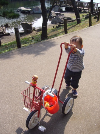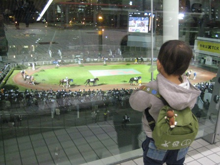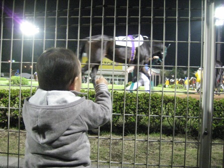 今日も公園の砂場に遊びに行きました。 お友達がたくさん来ていました。 虹くんも人見知りすることなく、お友達と一緒に遊んでいたよ。 おうちに帰ってお昼ごはんを食べた後は、お昼寝タイム。 夕方は、競馬場 に遊びに行きました。クルージング に乗りたかったけど、またもや抽選に外れちゃった。残念・・・。パドックでは、自分から前に行って、柵にかじりつくようにお馬さんを見ていました。 通るたびに虹くんを見つめるお馬さんもいて、 虹くんも指を指して 喜んでいました。それからレストランでちょっぴり休憩タイム。 虹くん、お店の人にメロンをサービスしてもらったよ。 ![]() 3階からパドックを見下ろしました。お馬さん、ちっちゃいね~。 お馬さんがいなくなっても、パドックからなかなか離れなかった虹くん。 自転車に乗るときも、お馬さんのところに戻りたい戻りたいって、 泣き叫んでいました ![]() 夜は、ママの妹のあきちゃんと3人で、もんじゃとお好み焼きを食べにいきました。 まだかな、まだかな~と焼いているのをじっと見つめる虹くん。 焼きあがってからも大人しく、おいしくパクパク食べていました。 |