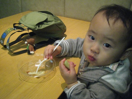 ほんと、ちょっと前まで泣いてたのがウソみたい。 先生に、「虹くん、おはよう~。」って言われて、自分から中に入っていったよ。 そして、2時間後にお迎え。 ママたちが戻ってきて、大泣きしている子もいれば、 ママに抱きついてくる子も。 虹は・・・マイペースに、おままごとして遊んでいました ![]() 帰りはみんな一緒なので、みんな集まって最後に先生からひとこと。 「今日のおやつはバナナを食べました。 このくらいの大きさ(1本の1/3くらい)のバナナ をあげて、多い子は4個も食べました~。 自分のお子さんはどのくらい食べたか、きっとお母さんは分かりますよね~。」 ・・・おそらく、4個食べたのは虹くんに違いない! 先生に聞いたら、やっぱりそうでした。 バナナに目が釘付けだったって ![]() 虹くんは、女の子と一緒に仲良く遊んでいたみたい。 先生から、「虹くん、優しいんですよ~。」って。 きっと、なでなで とかしてあげたのかな?帰りに虹くんとランチ。 今日から2泊、横浜のおうちにお泊りです。 じいじとばあばがお迎えにやってきました。 虹くん、またあさって。・・・行ってらっしゃい ![]() |