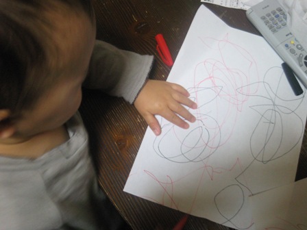 お友達にひっかかれてしまったらしく、お迎えに行ったら、額に傷が・・。 先生からも「ごめんなさいね・・。」と。 「それにしても、虹くんは良く遊びますね~。一番遊んでいるかな。」だって。 傷を忘れるほど遊んでいたみたいです。 午後は今日もおうちでゆっくり。 ここ最近、虹くんのおもちゃもたくさん増えました。 プラレールにブロック、粘土・・・などなど。 それにママが使っていたデジカメもついに壊れてしまい、 虹くんのおもちゃに仲間入りしました。 ママは新しいカメラを買ったよ~ ![]() お絵かきもして遊んだよ。 今日はママ、嬉しいことがありました。 パパにはもう少し秘密ね! |