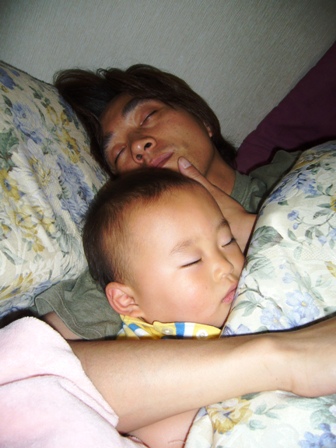 ママは晩ご飯を作って、虹くんを保育園へ。 やはり案の定、大泣き。 今日はママの妹、あきちゃんが迎えに行ってくれました。 久々なので、とりあえず、迎えにいっても泣かないように・・・と思って 行く前にあきちゃんの写真を見せておきました。 その効果があったのか分からないけど、 あきちゃんが迎えにいったら、虹くん、ニコッとしておじぎをしたらしい。 全然泣かなかったみたい。良かった、良かった。 保育日誌によると・・保育園では、はじめは泣いていた虹くん、 電車が通るのを見たらご機嫌になって、それからはお友達と走り回ったり、車で遊んだりして笑顔だったみたい。 ママが帰ったら、虹くん爆睡してました。 |