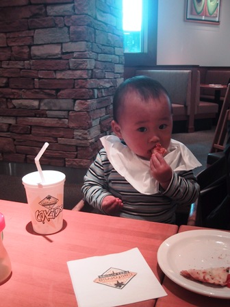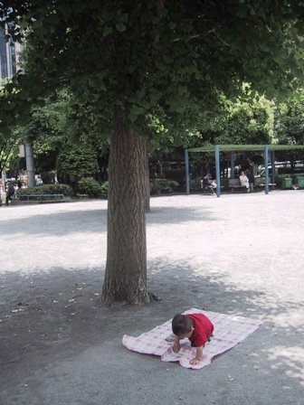 半分まで皮をむいて、そのまま渡したら、 パクパク食べ始めた虹くん。 しばらくして、隣の台所にトコトコ行って戻ってきた。 何しに行ったんだろう~?と思ったら、 手にはバナナはありませんでした。 ・・もしや? ゴミ箱を開けてみたら、ちゃんとバナナの皮が入っていたのです!! これにはママも感激!! バナナの皮をちゃんとゴミだと理解して、 さらに、ゴミ箱に捨てるものだと分かってるなんて!! ここまで成長したのね~、と感慨深い出来事でした。 お昼のお散歩はまたいつもの公園へ。 昨日に続き、ハトを捕まえようと追いかける虹くん。 なかなか捕まえられず、イライラ、イライラ。 |