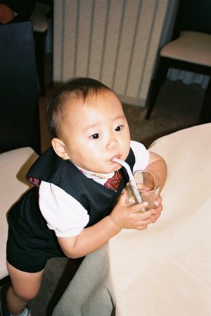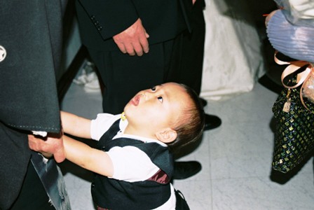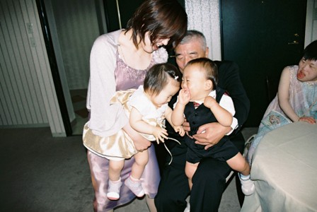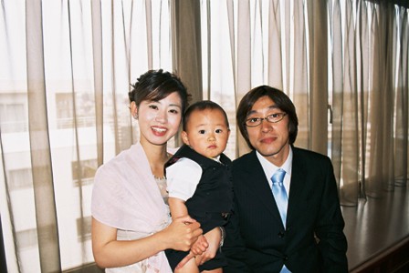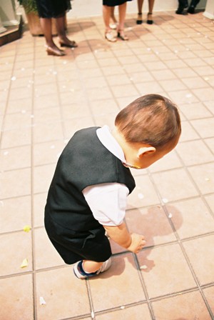 おじちゃん、おばちゃんの結婚式。 虹くんもこのときばかりは、ネクタイしめて、きりっと! 親族控え室では、用意されているドリンクを飲みたがって大変。 我慢させようとすると、ぐずってばかり・・。 しばし待ち時間があってようやく結婚式がスタート。 オルガンの音色に、虹くんは、様子が分かるのか、 じっとおとなしく挙式を見守っていました。 今日もちはるちゃんと遊んだよ。 ドレスアップして、かわいいちはるちゃん♪ フラワーシャワーでは、ちょっぴりごきげんになった虹くん。 でもおなかが空いたよね・・・そしてそして待ちに待った披露宴。 虹くんもようやく食事にありつける! ・・とその前に、子供たちみんなで乾杯の発声!! やっとやっと、虹くんの前には豪華なお子様メニューが! 大きいハンバーグにエビフライ、グラタン・・。 まだ食べるのにはちょっと早いけど、ま、今日くらいは、と食べる、食べる。 とたんに、虹くんのテーブルはあっという間に、大変なことに。。 後ろを振り向いたら、ちはるちゃん、 ちゃんとママに取り分けてもらって、上品に食べてました。 この違いはなんなのかしら・・・。 途中からお仕事だったパパも駆けつけて、家族3人での写真も撮ったよ。 ご飯を食べてからは元気いっぱいな虹くん、 会場内を駆け巡っていました。 そして、無事お開き。 初めての結婚式、さすがに疲れちゃったらしく、 帰りのバスの中は爆睡でした。お疲れさま、虹くん。 いつかママも、虹くんの結婚式に出席する日が来るんだろうな・・・。 |