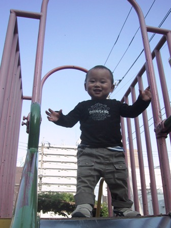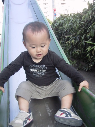なぜか、ほとんど毎回、横浜から戻るとタイミングよく、虹くんは鼻炎の症状が出始めます。 朝から鼻水だらだらでした。 なので、今日も耳鼻科に行ってきました。 お買い物をして、それからいつもの公園へ。 夕方にはハトぽっぽさんはどこかに行ってしまうらしい・・・。 一羽もいなかったね。 大きい滑り台に初挑戦! ママが一生懸命、虹くんの手をひいて登って、一緒に滑ったよ! そこへ、おじさんがワンワンを連れて登場! ワンワンは子供好きらしく、虹くんの所へもやってきて、隣にお座りしてた。 虹くんもワンワン大好き! 怖がらず、なでなでしてたよ。 ワンワンが帰ったあとも、 滑り台、かなり楽しかったらしく、ママは何度も何度もやらされました~。 |